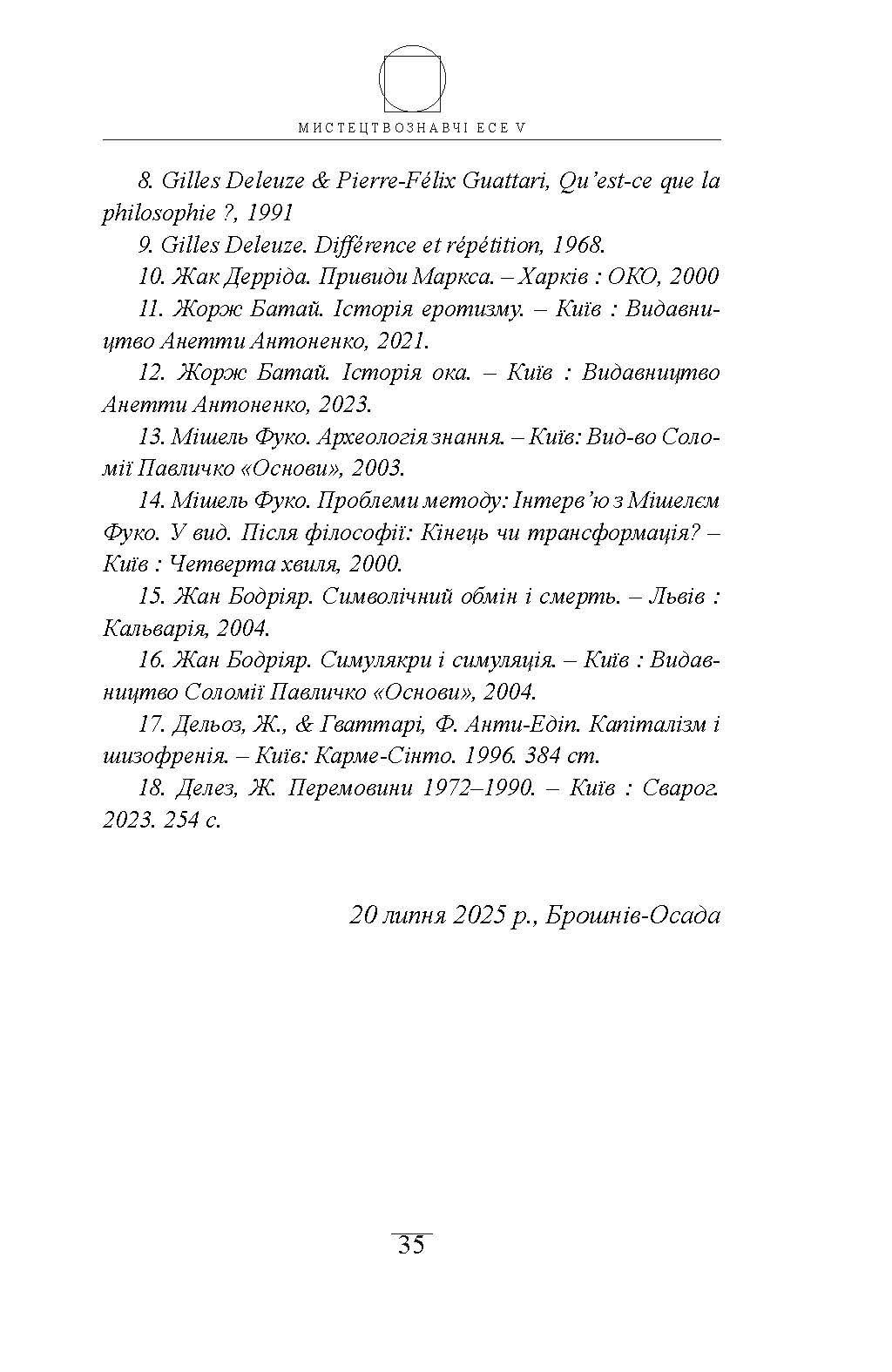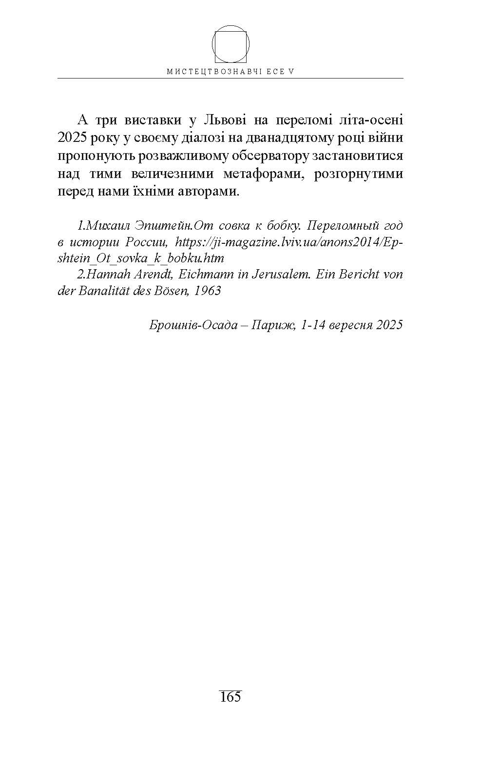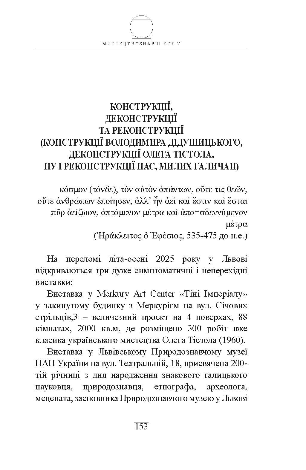 МИСТЕЦТВОЗНАВЧІ ЕСЕ V